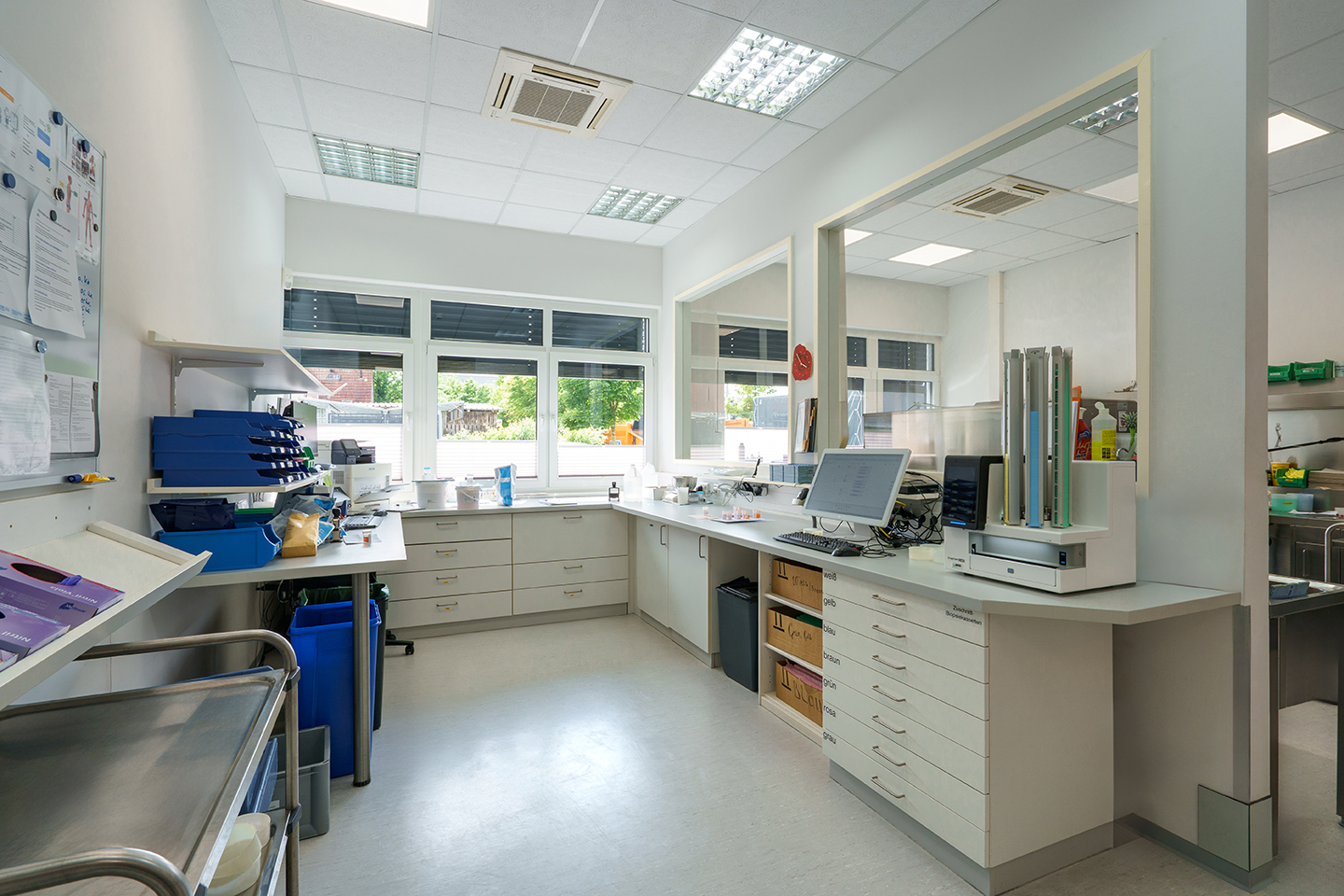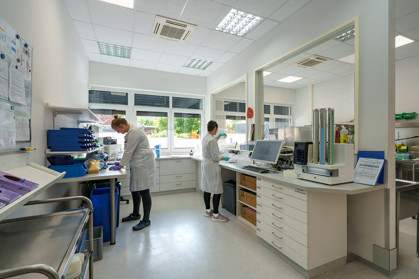 In beiden Standorten setzen wir auf modernste technische Ausstattung: Dazu gehören automatisierte Kapsel- und Slide-Printer, Mikrotome der neuesten Generation sowie leistungsstarke Färbeautomaten. Diese sorgen nicht nur für Effizienz, sondern reduzieren auch die Fehlerquote deutlich. Ersatzgeräte sichern unsere Prozesse zusätzlich gegen technische Ausfälle ab.